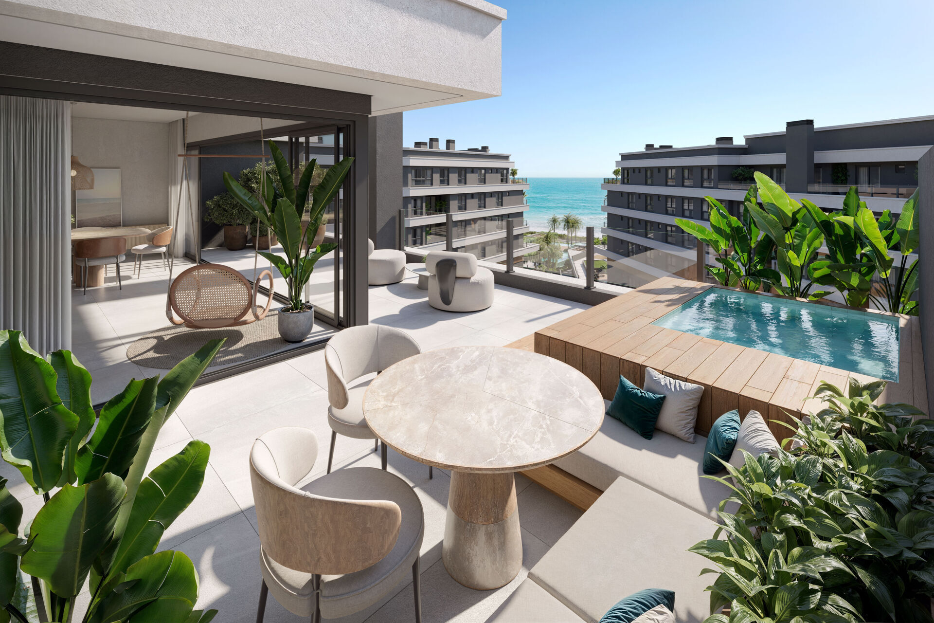 Cobertura de 118,55m² no Casa Éden oferece o equilíbrio perfeito entre sofisticação, conforto e a energia única da Praia da Conceição. São 3 suítes amplas, living integrado com sacada, e uma arquitetura que valoriza luz natural, privacidade e bem-estar.
