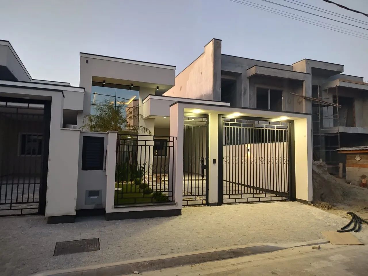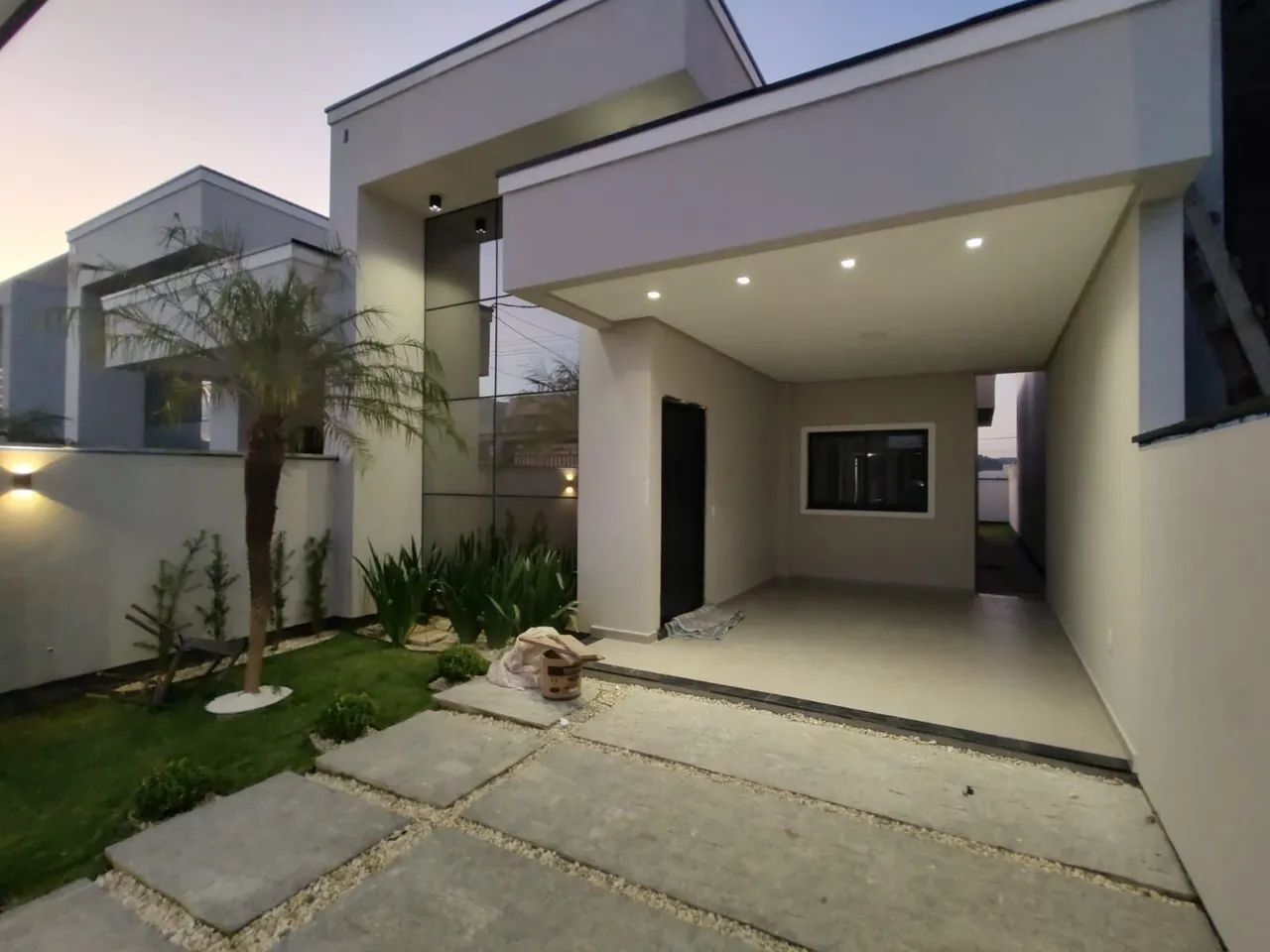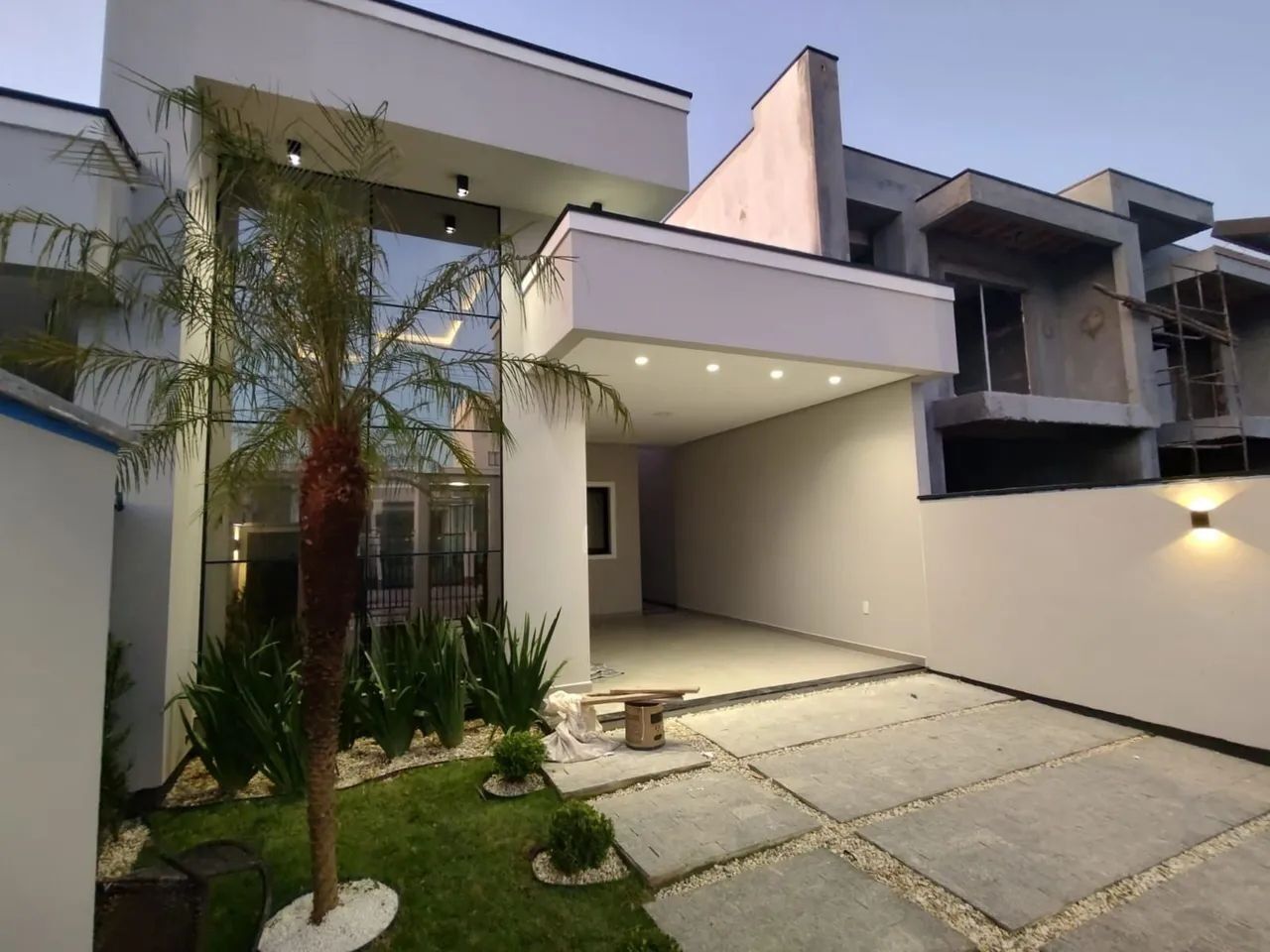 Construída em 2023, a residência conta com 90,77 m² de área construída em um terreno de 183,89 m², e se destaca pela fachada moderna com pele de vidro, que garante iluminação natural e um visual sofisticado.